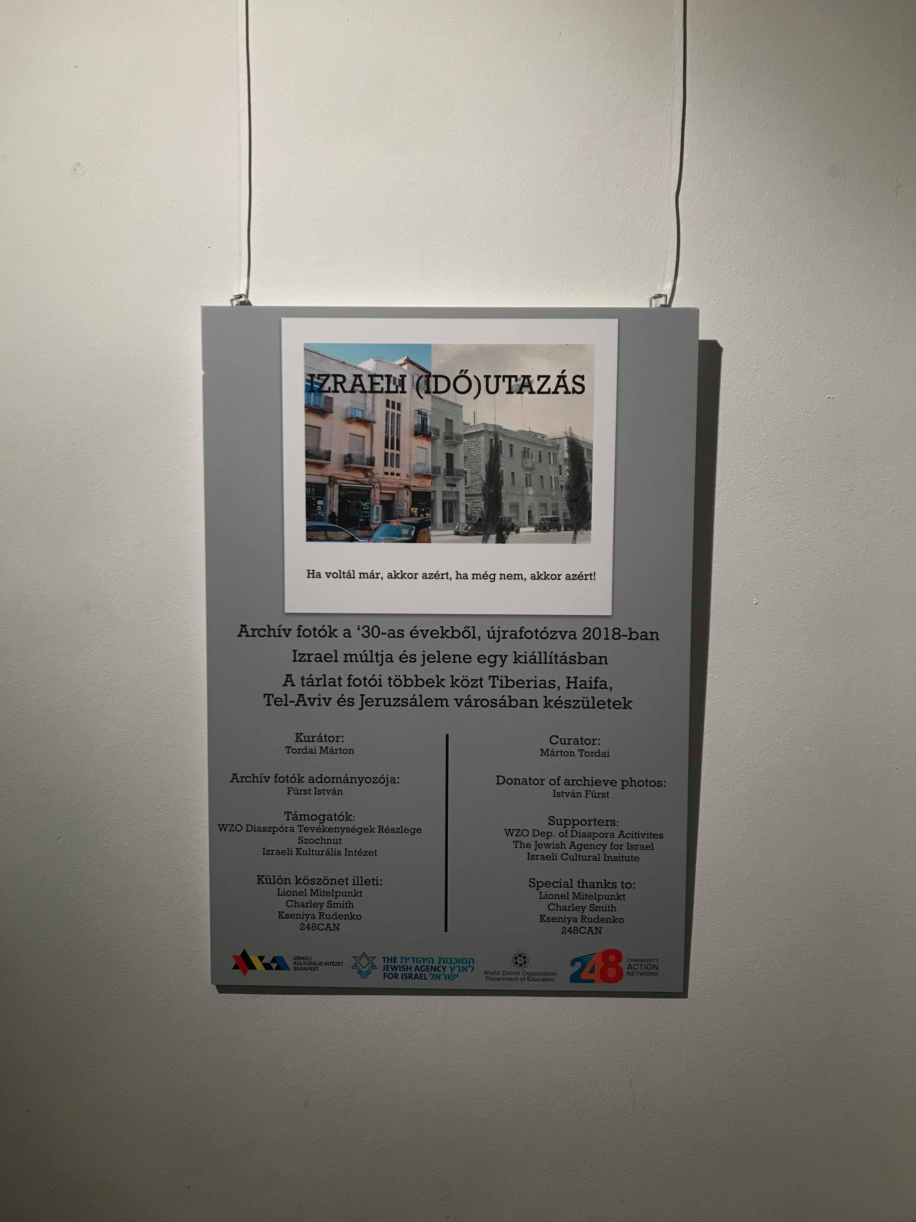 A kiállítást annak kurátora és egyben alkotója, Tordai Márton nyitotta meg. Kiállított képei csak félig saját alkotások, hiszen magát a tárlat létrejöttét is a Fürst Istvántól származó egykori fekete fehér képek ihlették. Fürst a ’30-as években készített fotográfiák teljes albumát tavaly ajándékozta az Izraeli Kulturális Intézetnek. A fényképek magával ragadó varázsa inspirálta Mártont arra, hogy Izraeli látogatása során a Fürst-től kapott képek 21. századi helyszíneit, 80 év után újra fényképezze és ’30-as évekbeli önmaguk mellé illessze azokat. Így kerültek egy képkeretbe a nosztalgikus múlt és jelenünk képei.