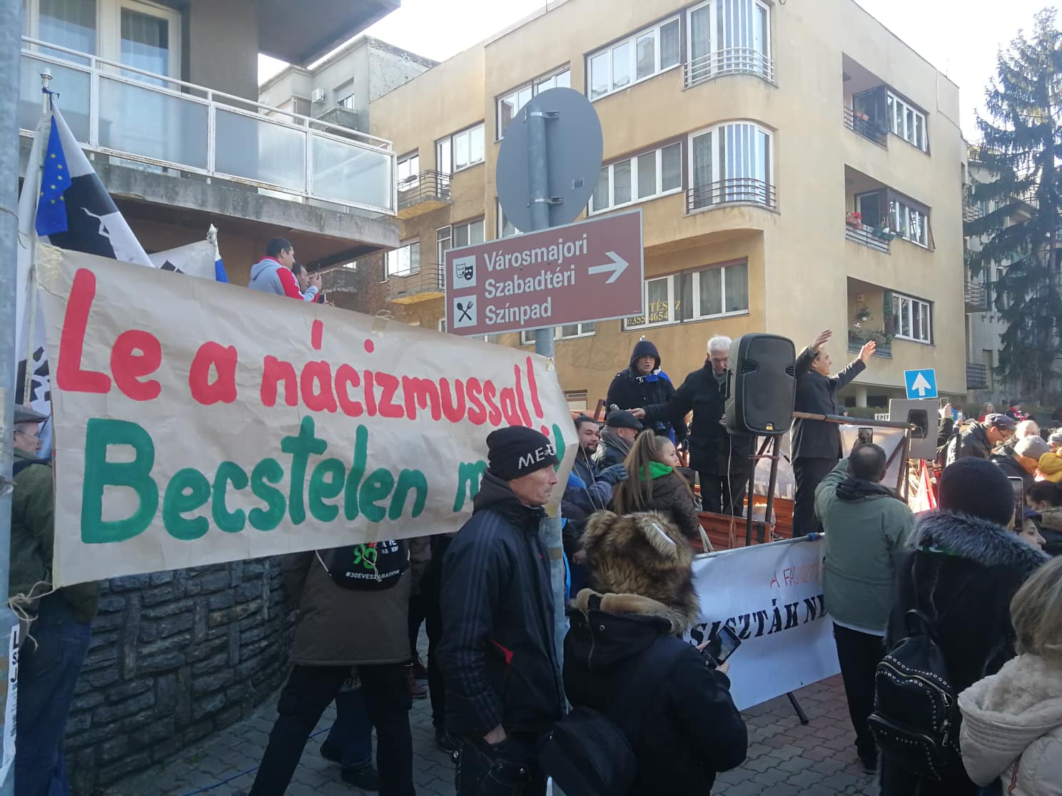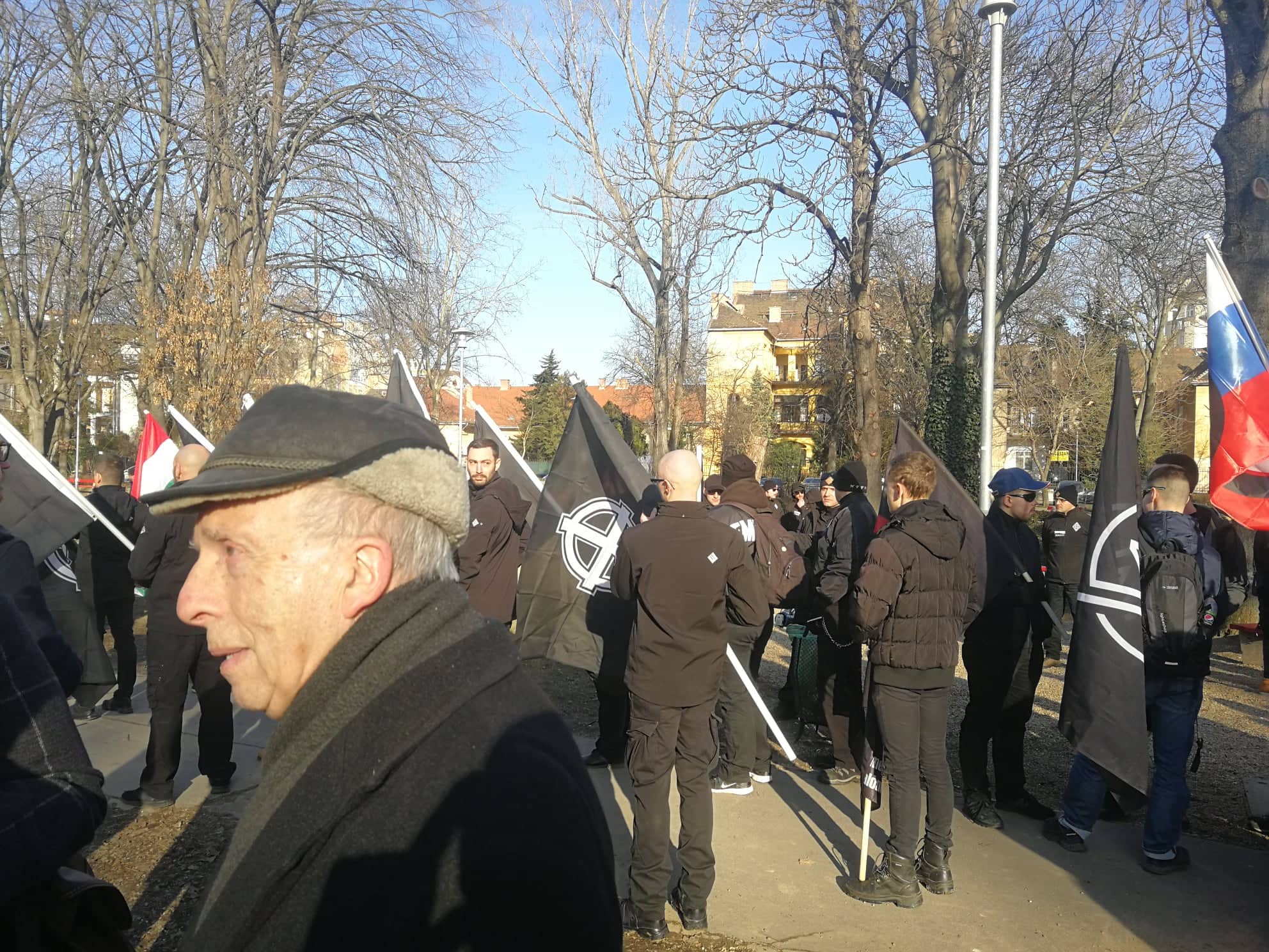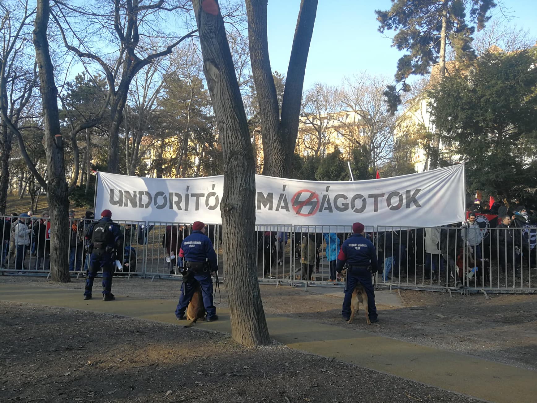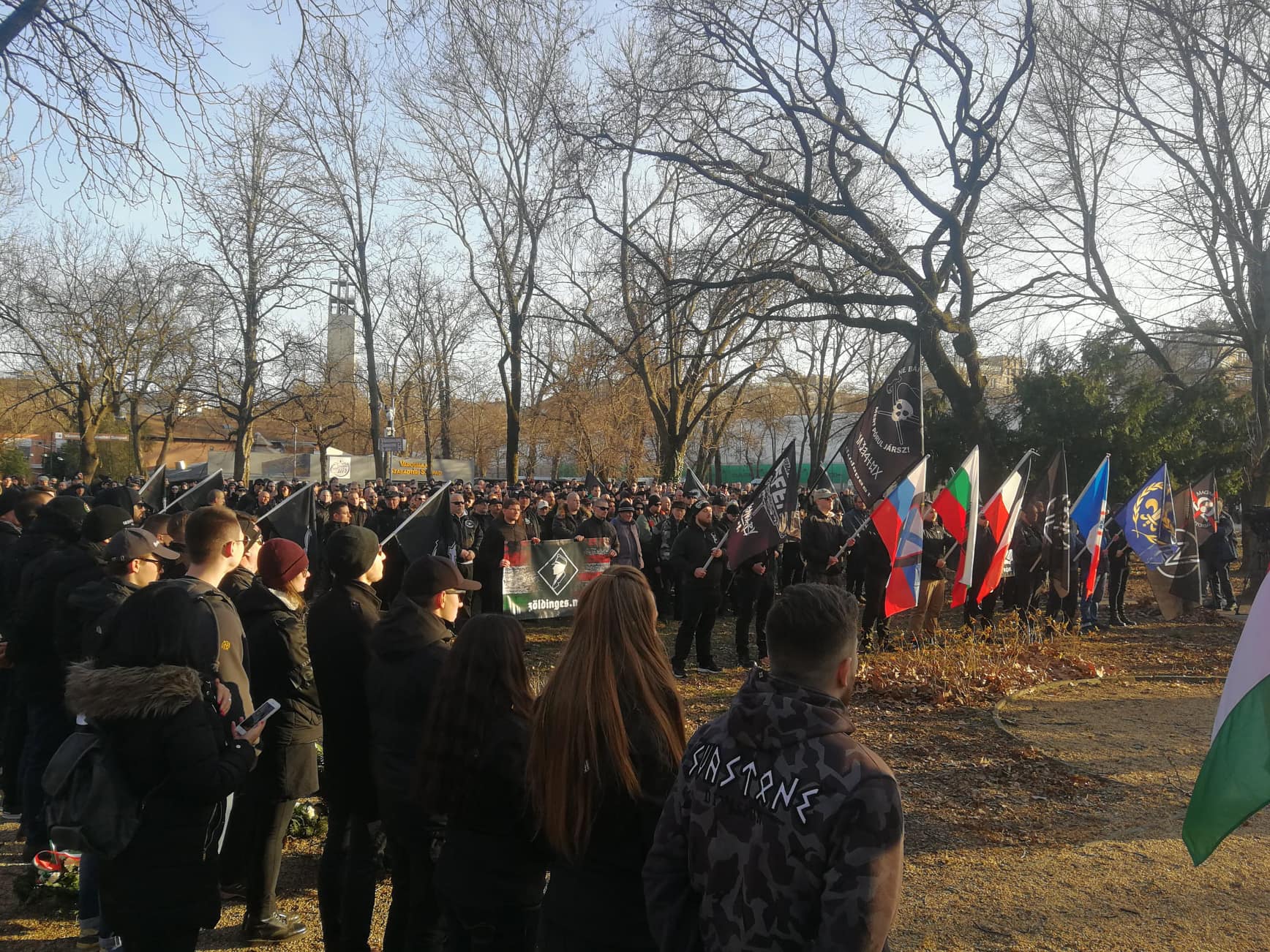 A vegyes tömegben magyarok és külföldiek, de többnyire fekete ruhába öltözött szélsőjobbosok jelentek meg a rendezvényen, akik a feliratok és az öltözet alapján a Betyársereg és a Légió Hungária Mozgalom tagjai lehetnek — számolt be a 24.hu.