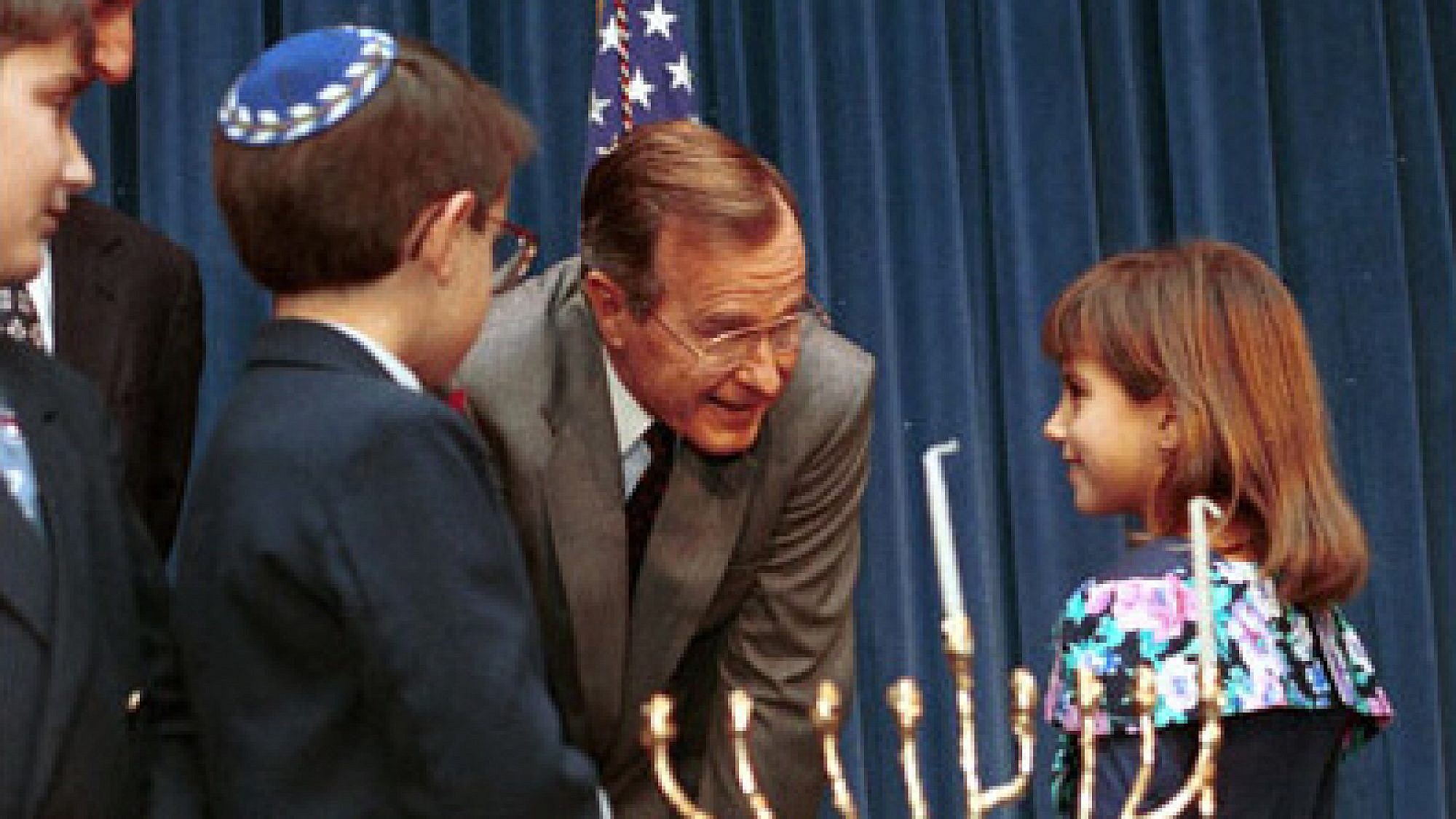A zsidó fény ünnepét 1989-ben George H. W. Bush vitte be a Fehér Házba. A hanukiát pedig az 1926-ban alapított ernyőszervezet, az Amerikai Zsinagóga Tanács (Synagogue Council of America) adta. Azonban, Bush elnök bár behozta a menórát a Fehér Házba, de ő nem gyújtotta meg a mécseseket. Az első amerikai elnök Bill Clinton volt 1993-ban, aki egy csapatnyi gyerekkel gyújtott hanukagyertyákat az ovális irodába. Az esemény még címlapra is került, miután a hat éves Ilana Kattan lófarka a lángokban kissé megperzselődött, és állítólag Clinton puszta kézzel oltotta el a parázsló hajat.