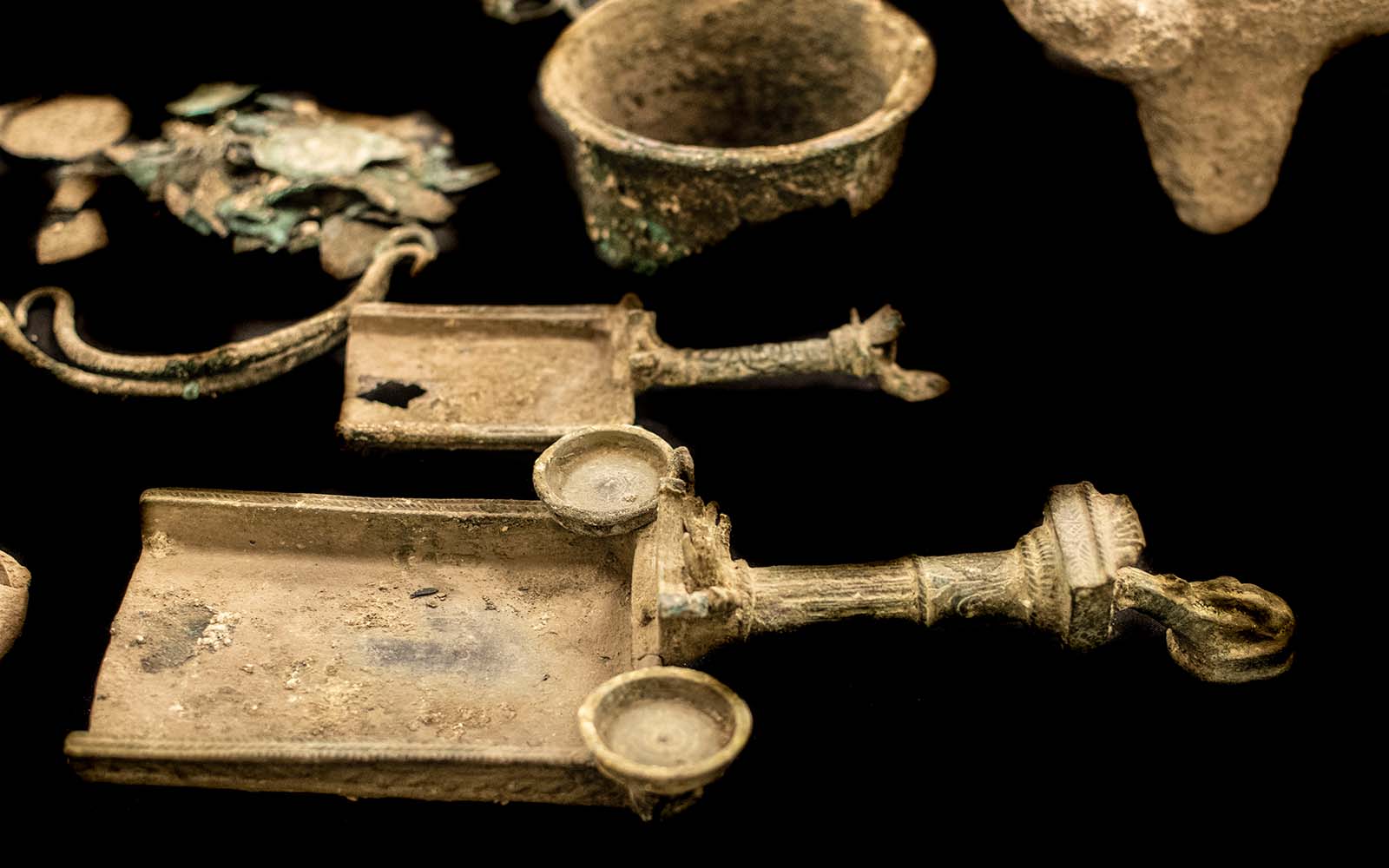 A bronz füstölőket valószínűleg gazdag római otthonokban vagy templomokban használták. A boroskancsót egy bankettjelenet díszíti, amelyen egy ember egy boroskancsóval hever. A hatóságok lefoglaltak egy díszes háromlábú kőtálat, római agyaglámpákat és több száz az i.sz. 2-3. században vert érmét is.