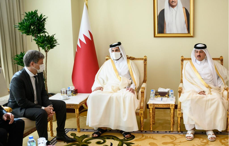 Az első képen Robert Habecket, a Zöldek energiaminiszterét láthattuk, amint alázatosan meghajol néhány katari sejk és miniszter előtt. Majd a következő kép a tárgyalásokon mutatja a minisztert, ahol a három katari aranyozott trónusokon foglalt helyet, miközben Habecknak csak egy kisszék maradt. Katar Habeck Kanosszája, több tekintetben is.