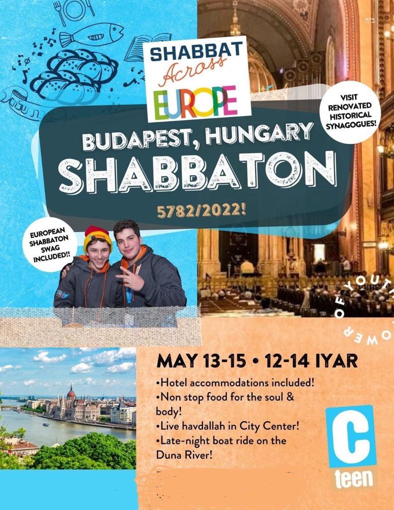 14 országból, csaknem 200 zsidó tizenéves fiatalt várnak Budapestre a zsidó ifjúsági szervezet, a CTeen képviselői a “Sábát Európán át” című rendezvényre, melynek vendéglátója az EMIH – Magyar Zsidó Szövetség. A május 13-án kezdődő, egész hétvégét kitöltő program, sábáton alkalmával a fiatalok megismerhetik a főváros zsidó vonatkozású nevezetességeit, közösen imádkoznak, és ellátogatnak egy kalandparkba is.