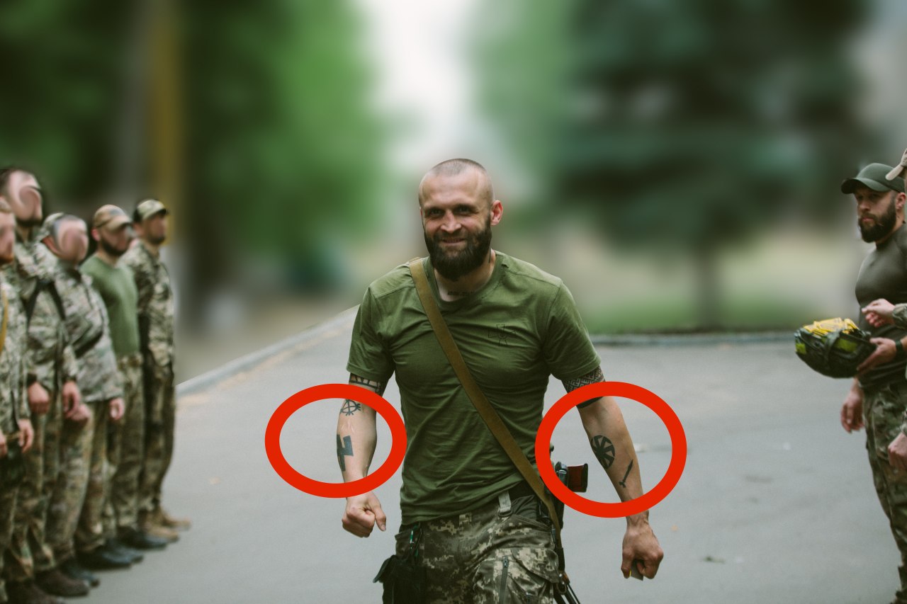 A régi beidegződések azonban nehezen halnak, főleg akkor, ha az ember az egységének jelképeit szívesen viseli magán valamilyen ruházat vagy tetoválás formájában, ahogy azt átadási ceremónián jelen lévő Azov-harcosok kinézete is mutatta: