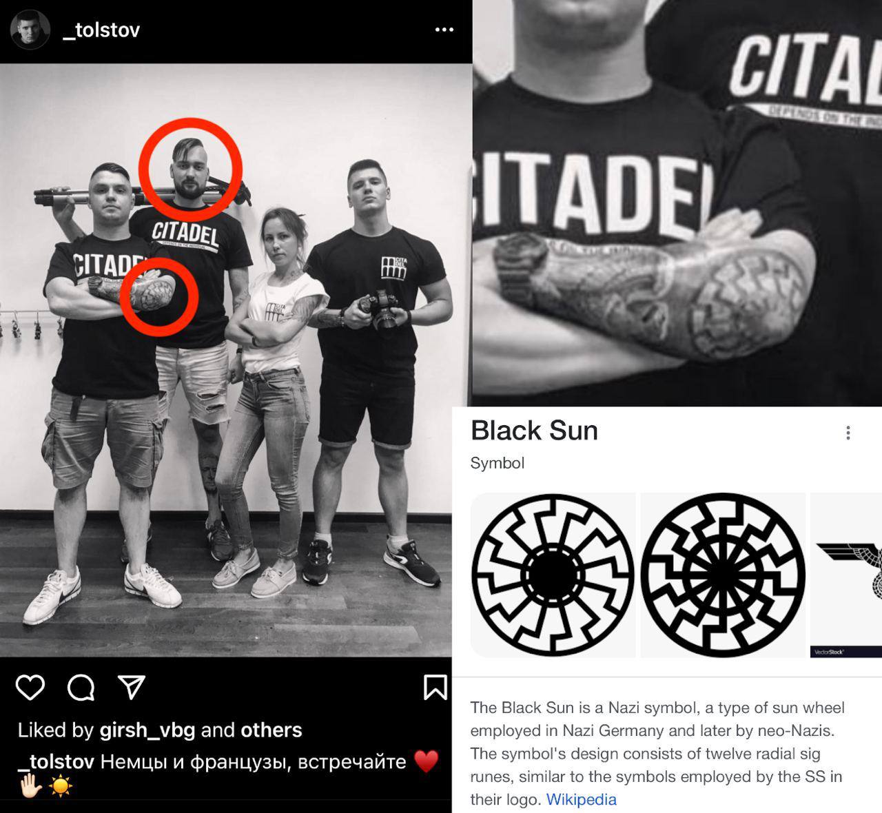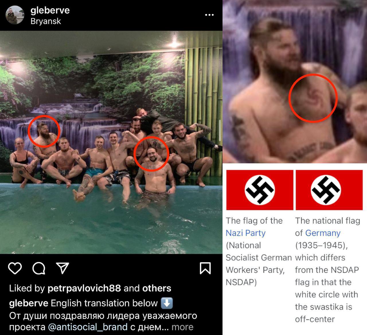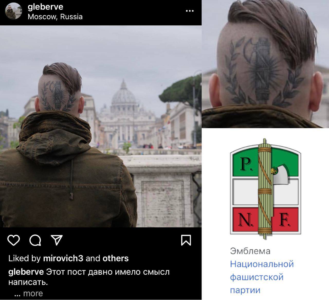 Ezeken látszik, hogy Erve tarkójára van tetoválva az Olasz Nemzeti Fasiszta Párt jelképe, a kezére pedig az Algiz, azaz a náci Németországban széles körben használt „Élet rúna”.