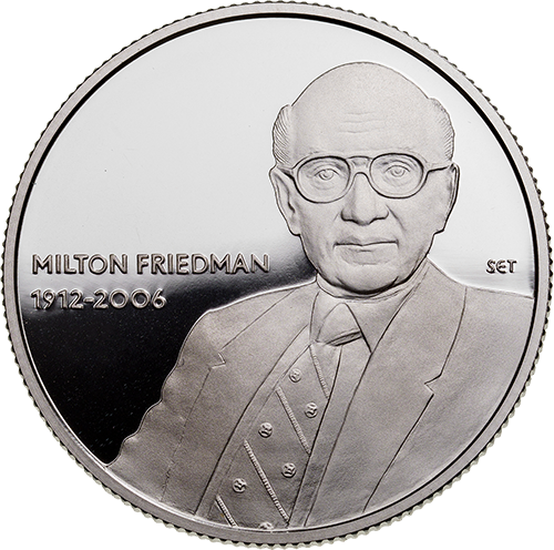 Milton Friedman születésének 110. évfordulója alkalmából 15 000 forint névértékű ezüst és 2000 forint névértékű színesfém emlékérmét bocsátott ki a Magyar Nemzeti Bank (MNB).