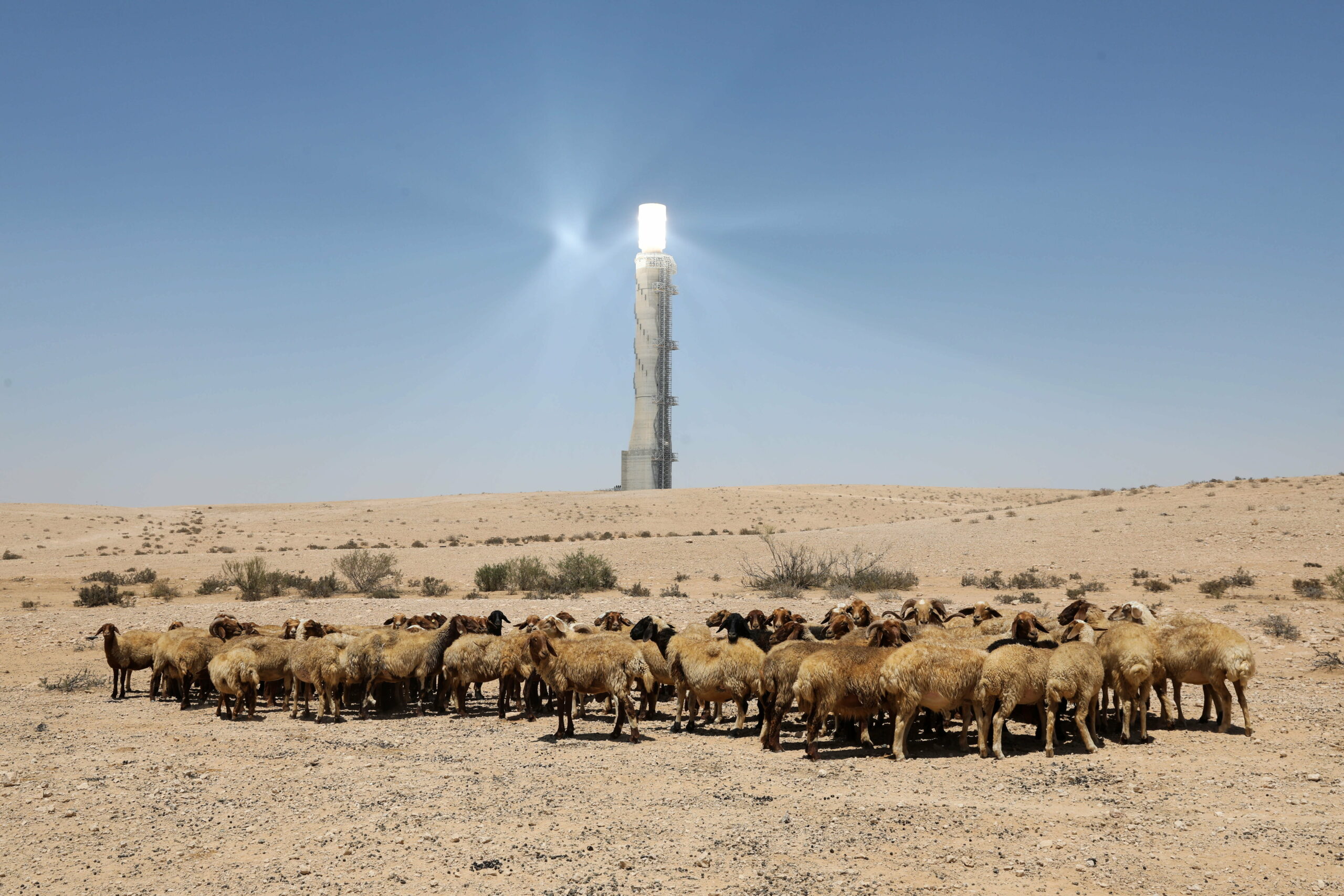 Az Asalim naperőműrendszer 250 méter rekordmagas tornya a Negev-sivatagban, az Asalim kibuc környékén áll.