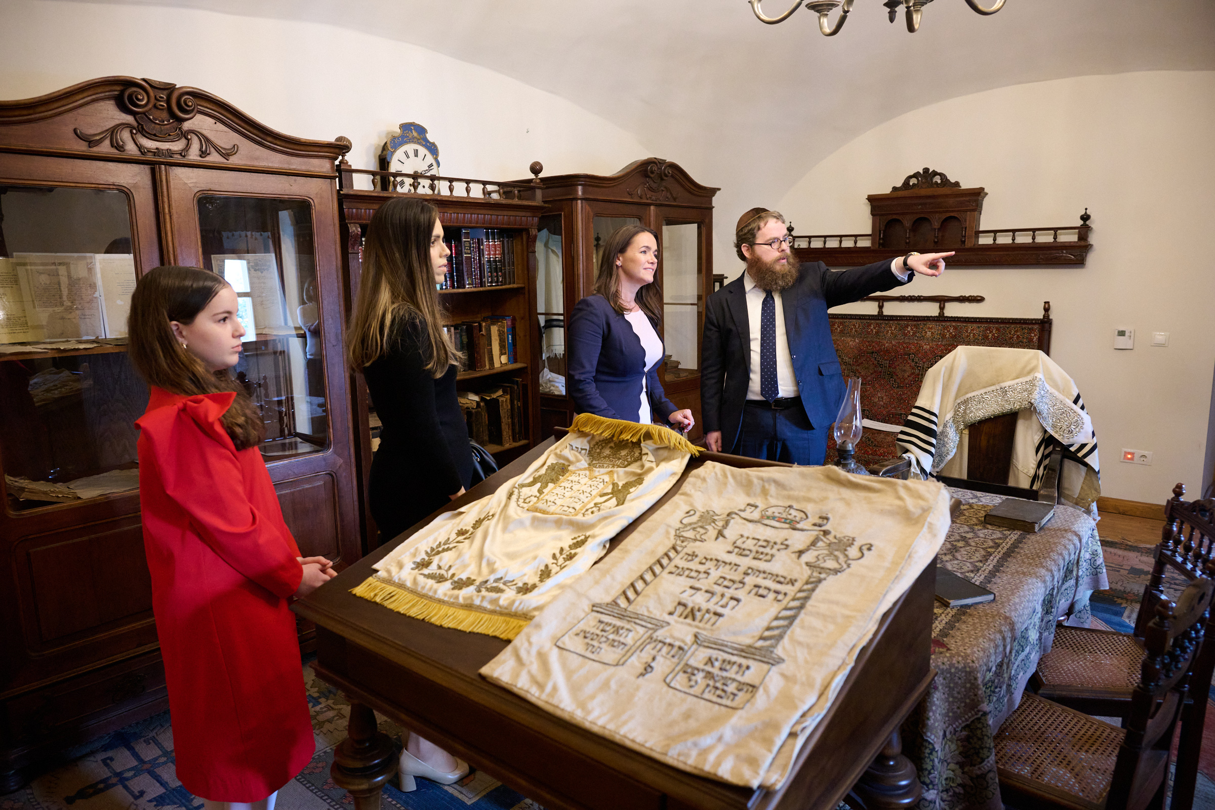 A zsinagógában és rabbiházban Köves Slomó rabbi, Köves Dvora rebecen és lányuk, Köves Rochie, továbbá Tóth Gábor az EMIH kabinetfőnöke kísérte az elnökasszonyt, megmutatva Mád zsidó múltját és jelenét, illetve szóba került még a fellendült tokaj-hegyaljai zsidó turizmus is, melyet az EMIH virágoztatott fel az elmúlt években. Külön kiemelendő, hogy a rabbiházban és fogadóban több ezer nem zsidó vendég is megszáll évente és itt nemcsak a mádi zsidó örökséggel, hanem általában a zsidósággal is megismerkednek, ebben segítségükre van Frank Mariann a mádi zsidóház vezetője is.