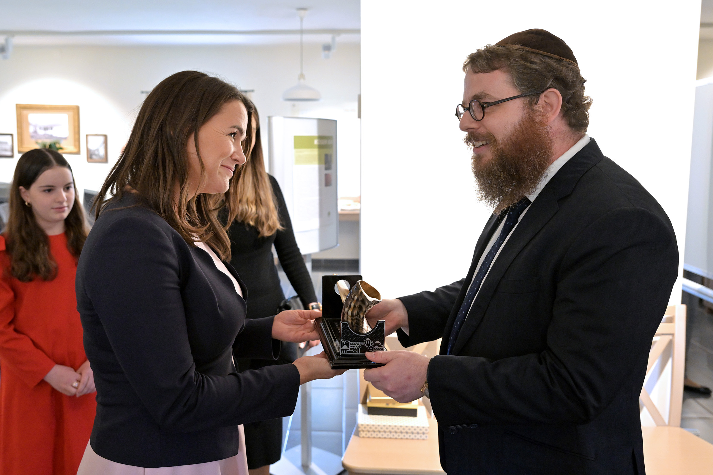 Ennek kapcsán a vezető rabbi egy ajándék sófárt nyújtott át Novák Katalinnak, amit elsőre sikerült megszólaltatnia az elnök asszonynak, ami óriási teljesítmény.