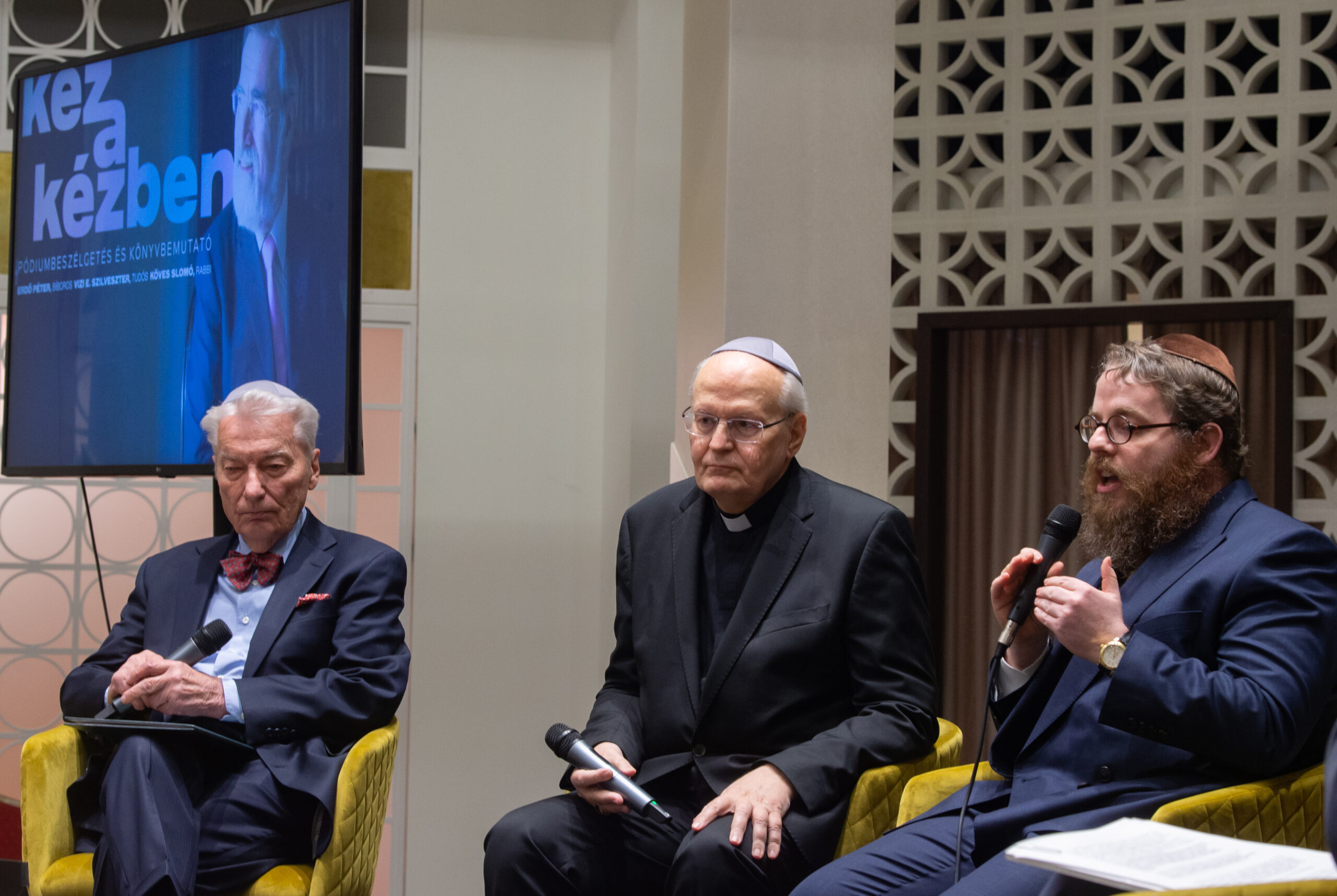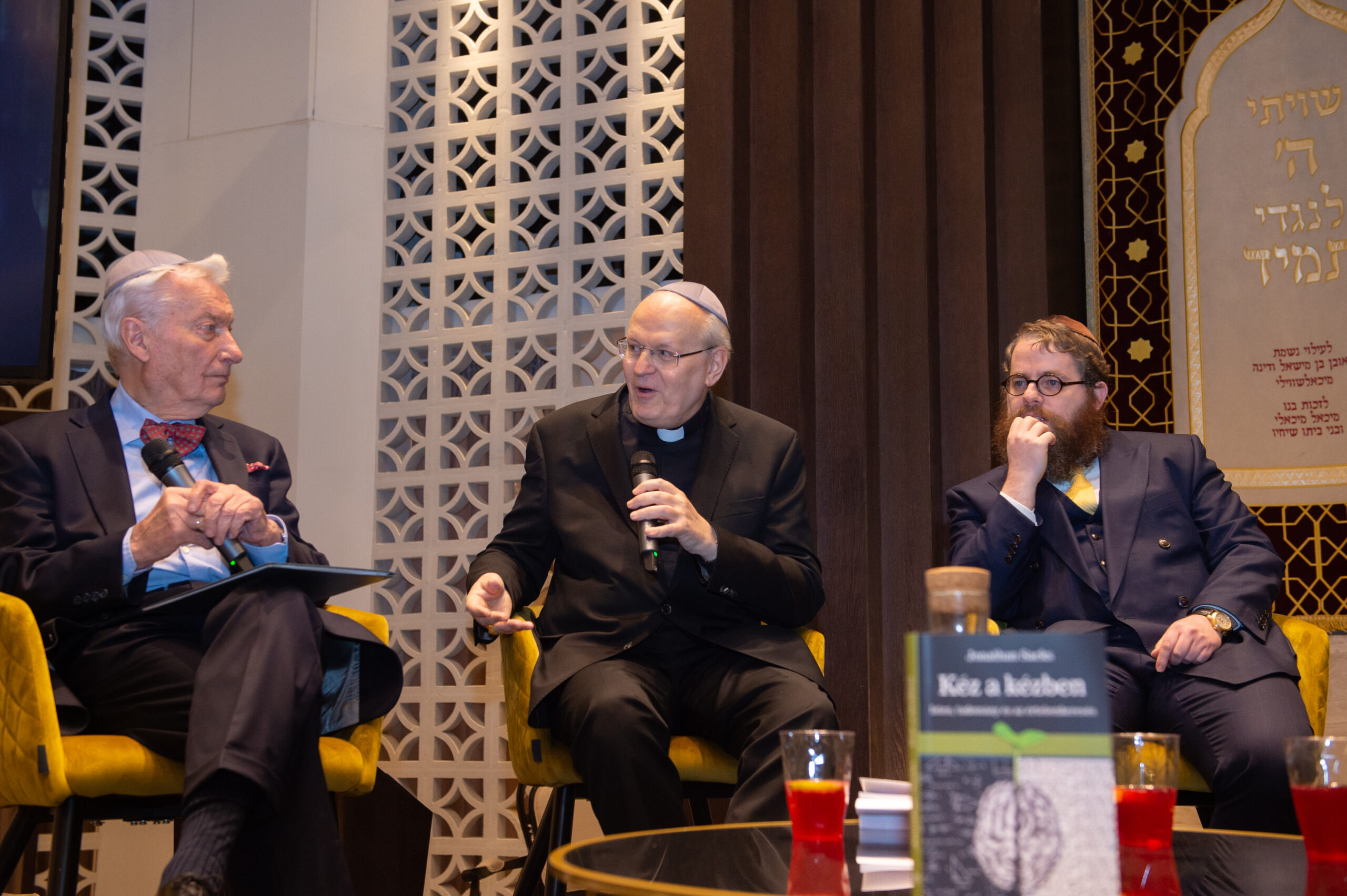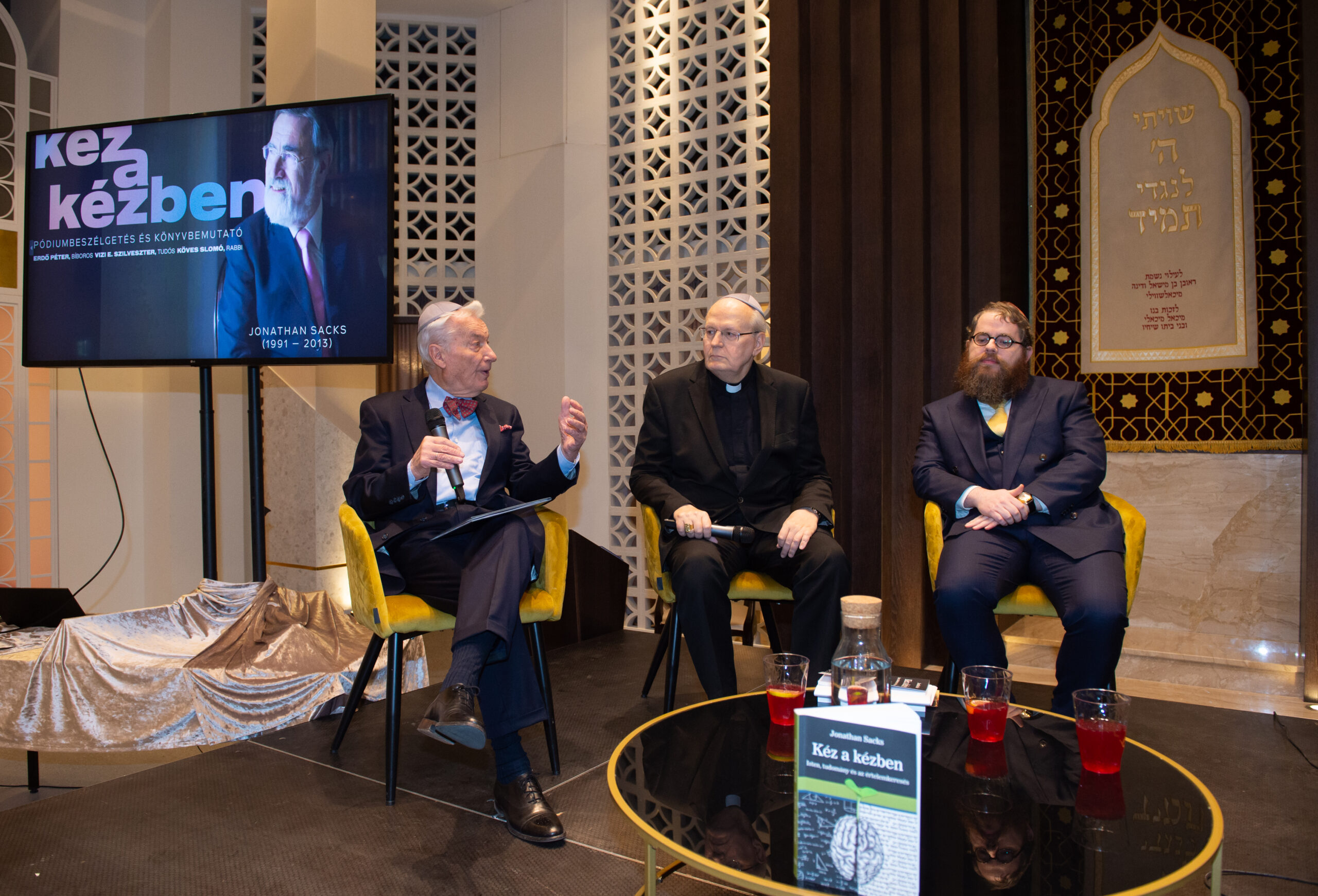 Kéz a kézben címmel először jelent meg magyar nyelven a Brit Nemzetközösség két éve elhunyt főrabbijának, Lord Jonathan Sacks-nek könyve. A mű bemutatója alkalmából Erdő Péter bíboros, Esztergom-Budapesti főegyházmegye érseke, Vizi E. Szilveszter az MTA volt elnöke és Köves Slomó, az EMIH vezető rabbija beszélgetett a könyvről, illetve a vallás és tudomány kapcsolatáról.