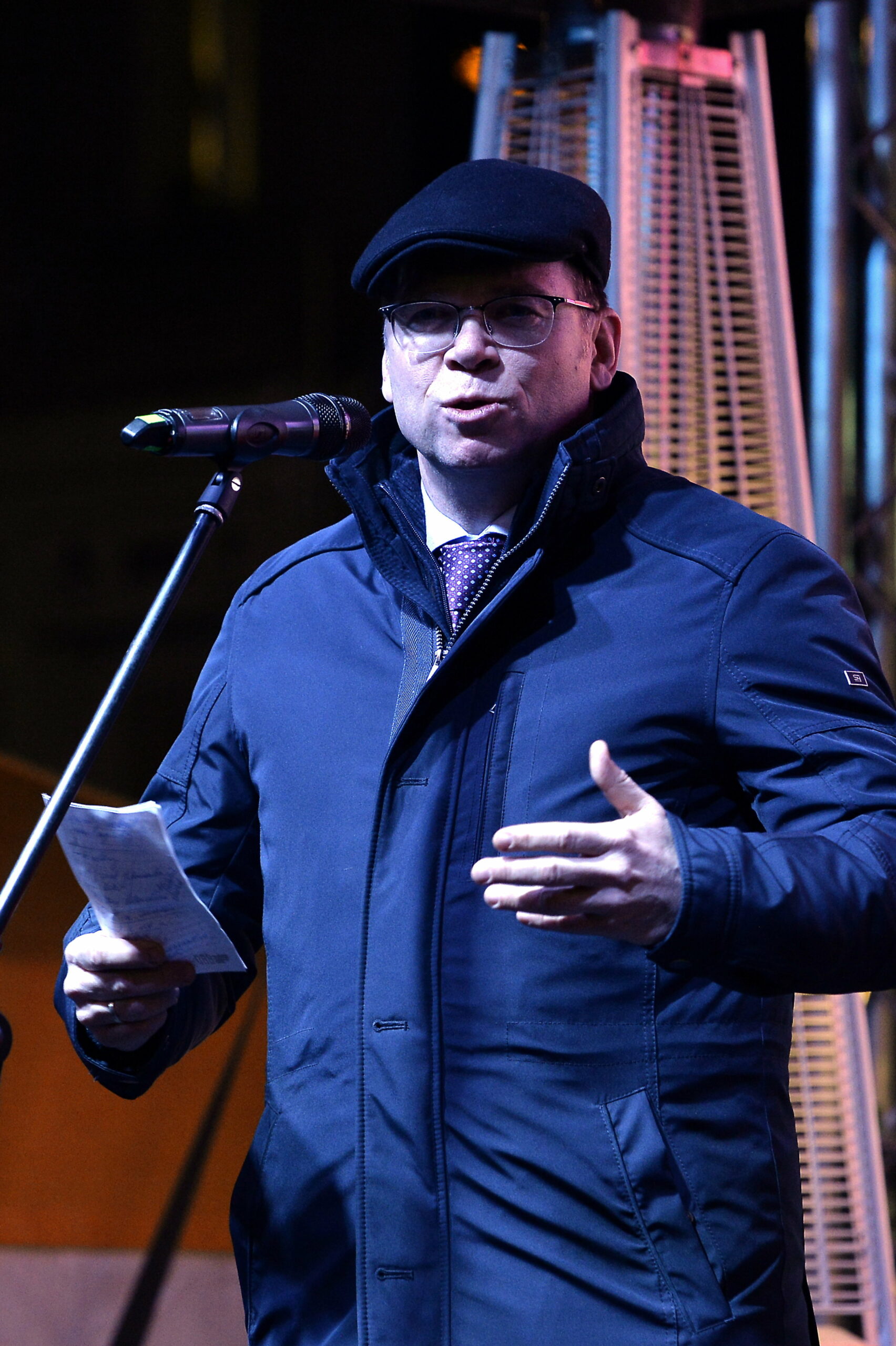 Meggyújtották az első gyertyát a zsidóság egyik legnagyobb ünnepe, a hanuka első napján, vasárnap a budapesti Nyugati téren felállított gyertyatartón.