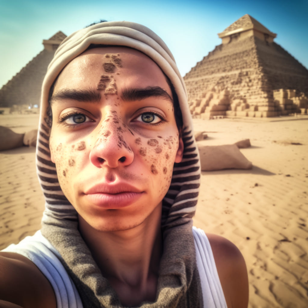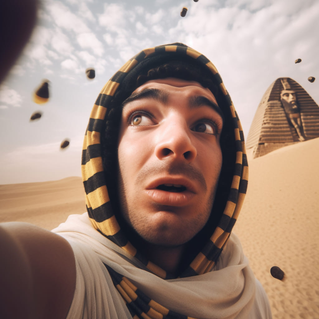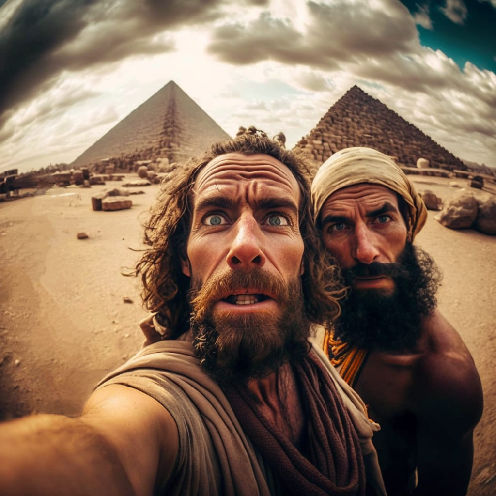 A Midjourney mesterséges intelligencián alapuló képalkotó szoftvert, Dana Green nevű felhasználója arra kérte, hogy mesélje el „korabeli” szelfiken keresztül az Exodus történetét. A képek magukért beszélnek: