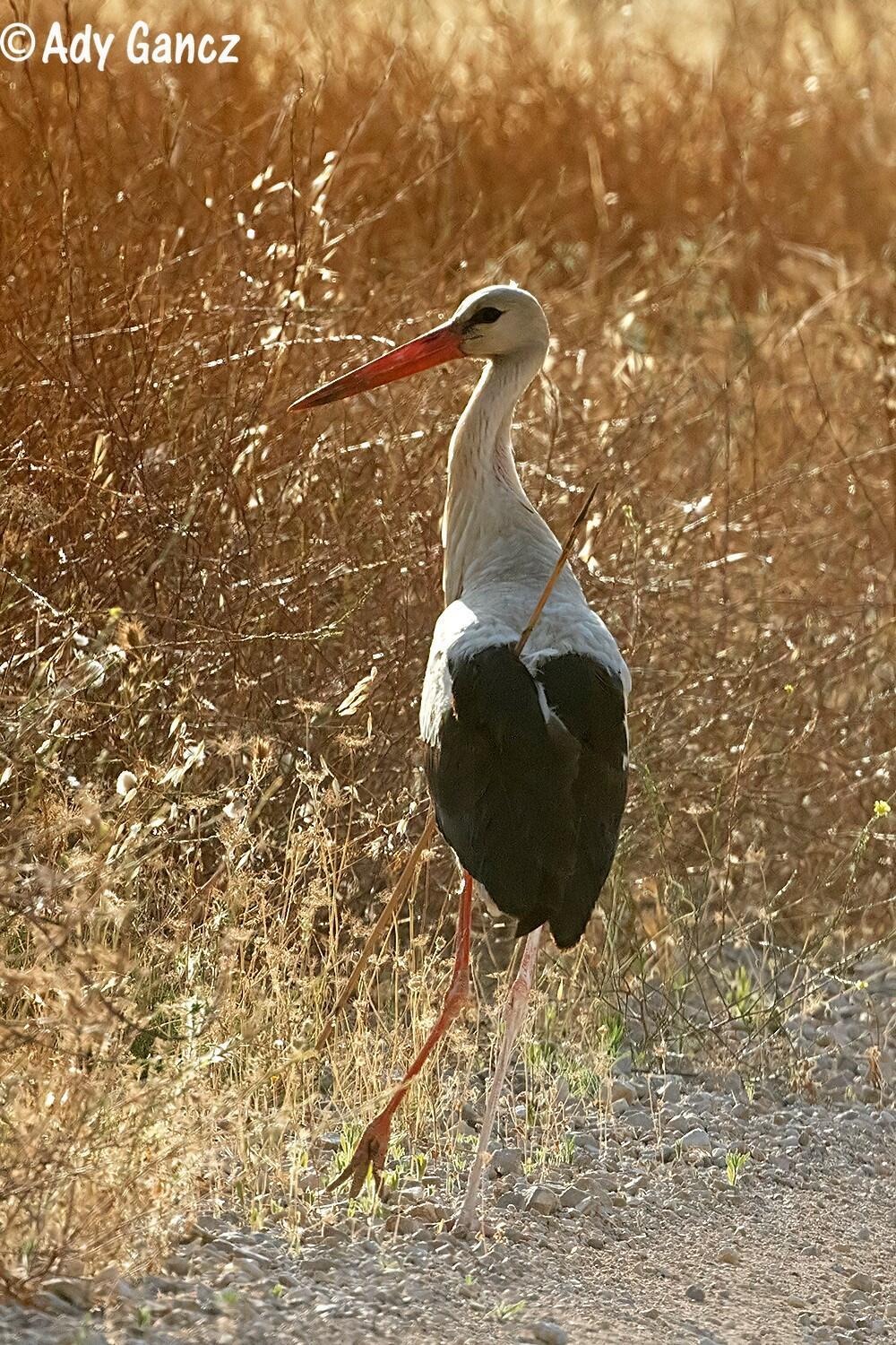 „Tucatnyi, talán több száz hozzá hasonló gólya volt, nem tudom, miért pont ő keltette fel a figyelmemet” – mondta Gancz. „Amikor megközelítettem, rövid ideig repült, és a távcsövemmel figyelve észrevettem, hogy a testének bal oldalán szinte függőlegesen egy nyílvessző szúródott.”