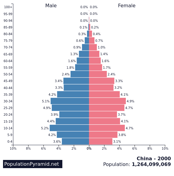 Kínában már 2000-ben is egyértelműek voltak a figyelmeztető jelek. Láthatjuk a 9 éves és annál fiatalabb korosztály drámai hiányát. Ez nem változott.