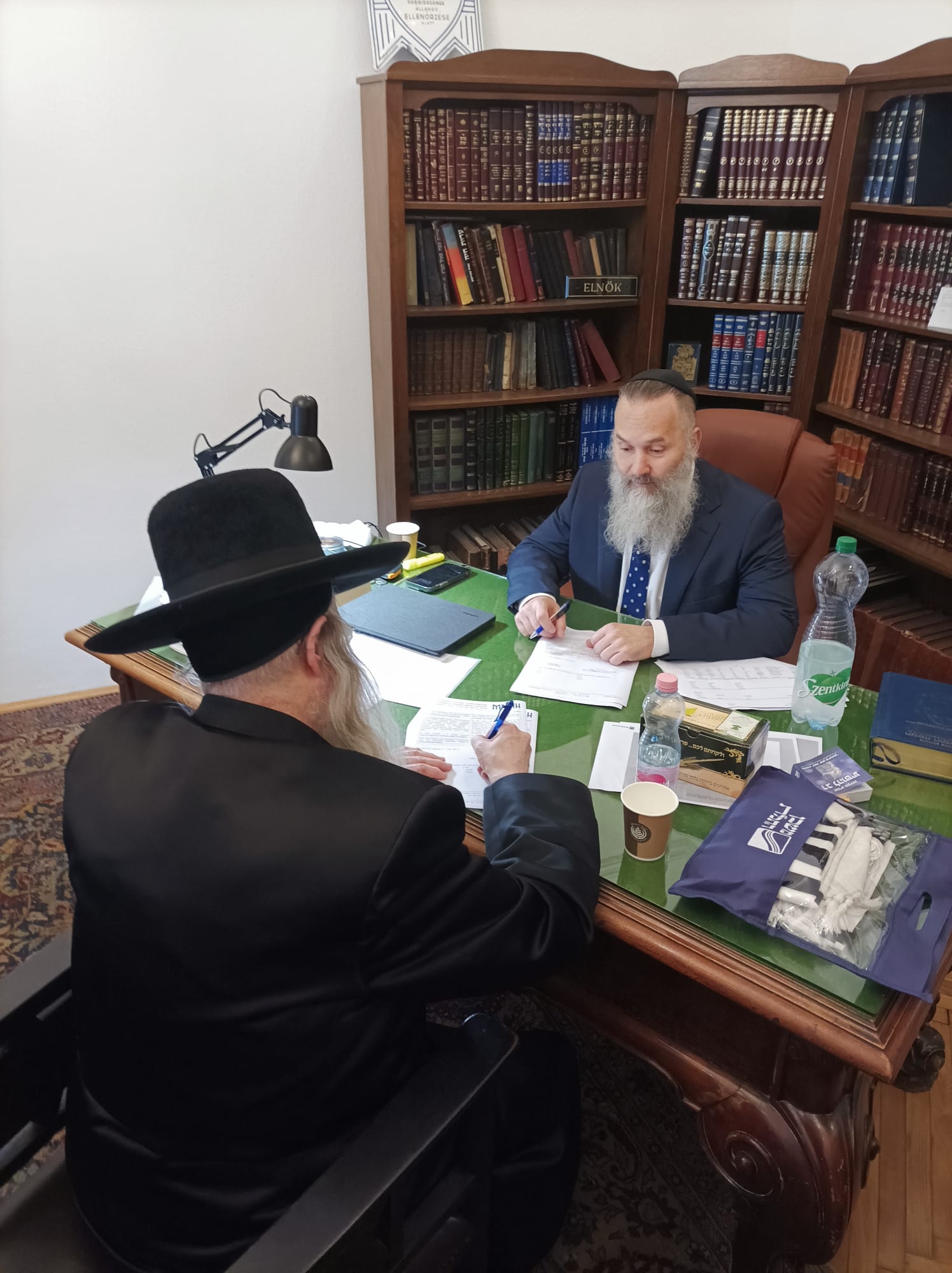Az aláírást követően Keszler elnök és Rabinowitz rabbi a közelgő zsidó újév és jom kipur körüli teendőkről beszélgettek – zárul a bejegyzés.