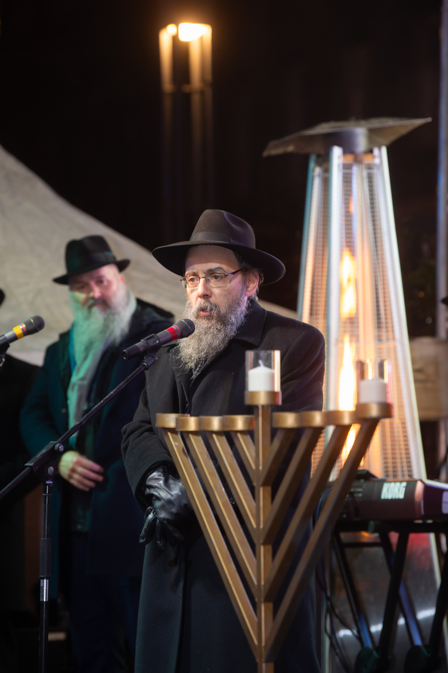 Oberlander Báruch rabbi, a Magyarországi Ortodox Rabbinátus vezetője köszöntőjében kiemelte, hogy 25 éve még sokan furcsállották a nyilvános gyertyagyújtást és sokan a zsidó közösségből féltek a zsidó identitás nyilvános megélésétől, „ma azonban nem fél senki és Istennek hála, büszkén élhetjük meg hitünket” – fogalmazott Oberlander rabbi.