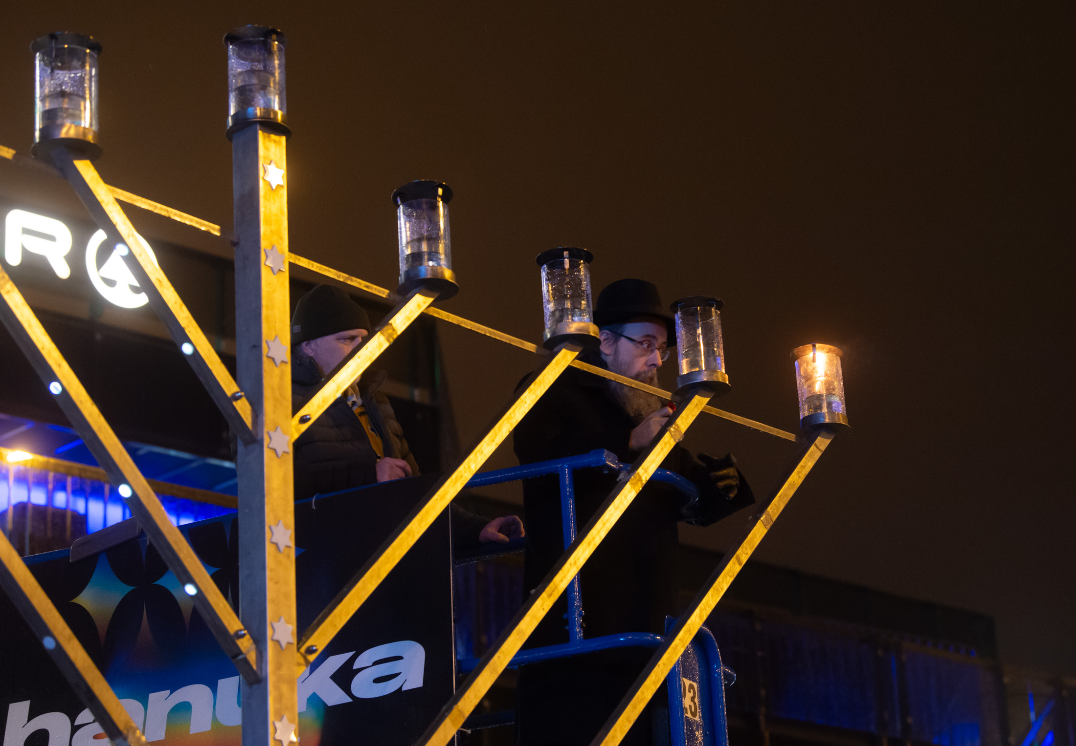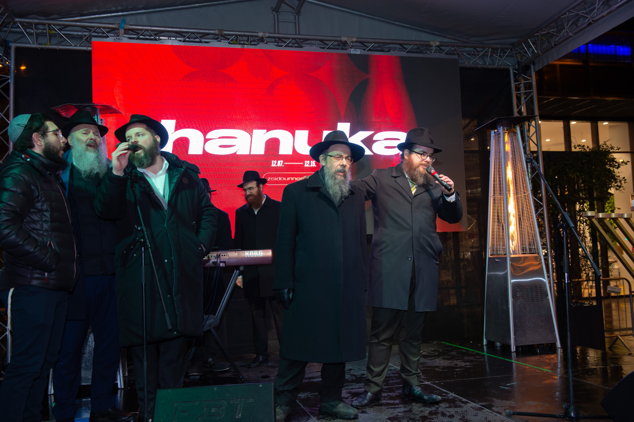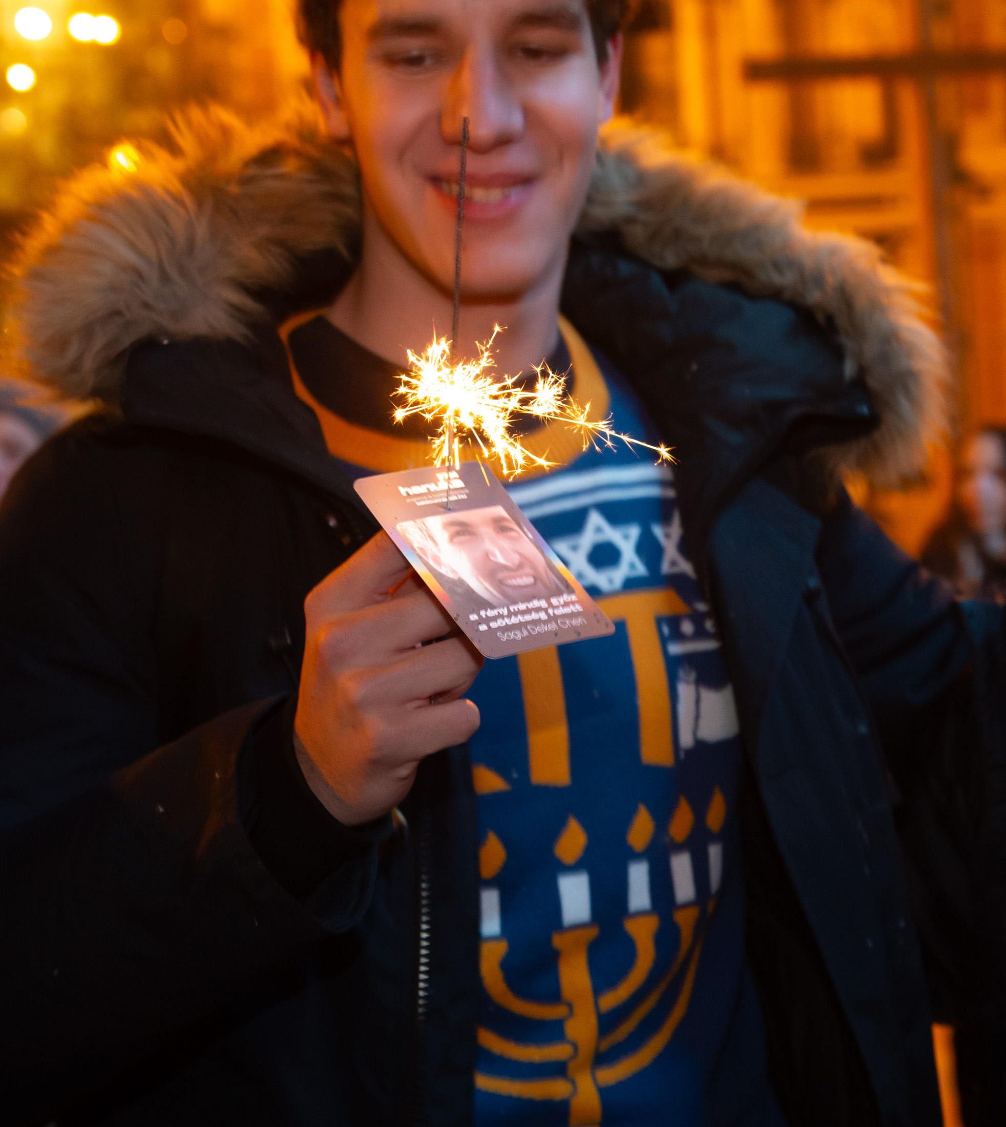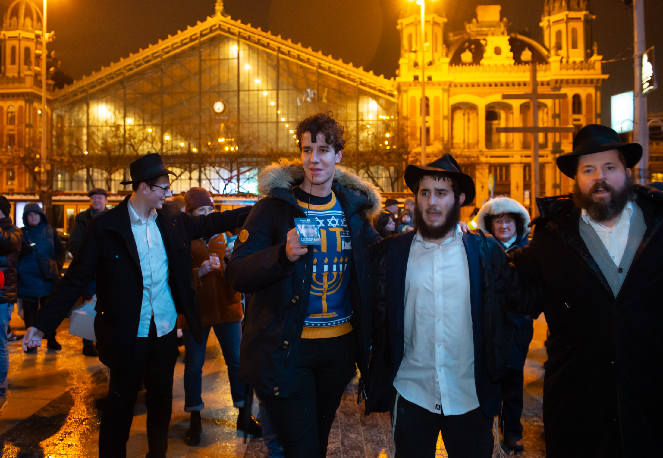 Immár 25 éve kerül sor a nyilvános hanukai gyertyagyújtásra a Nyugati téren. Idén az ünnepnek különös jelentősége van az Izraelt ért terrortámadás és az annak nyomán kialakult háború miatt” – fogalmazott beszédében Köves Slomó, az EMIH vezető rabbija.