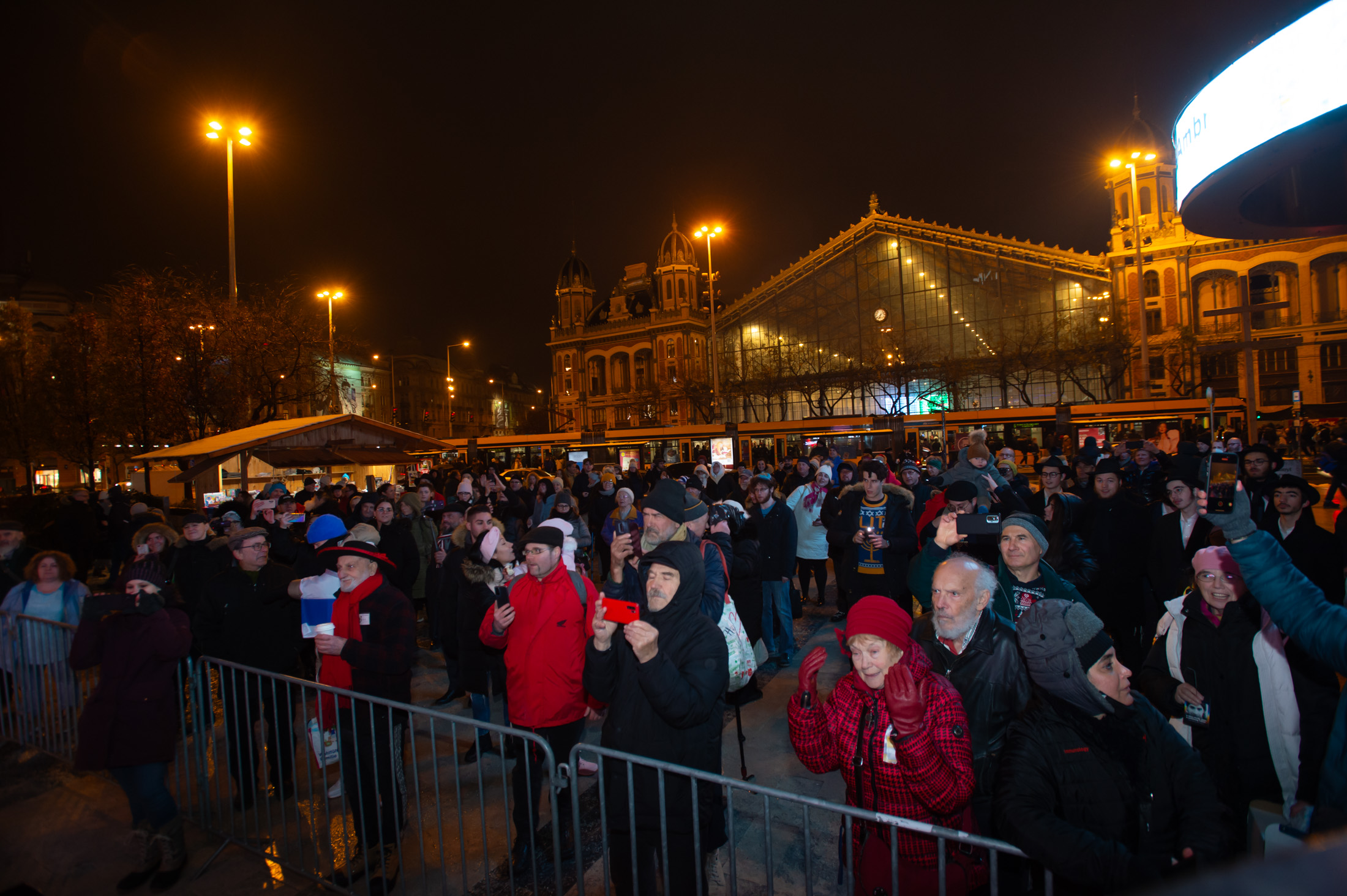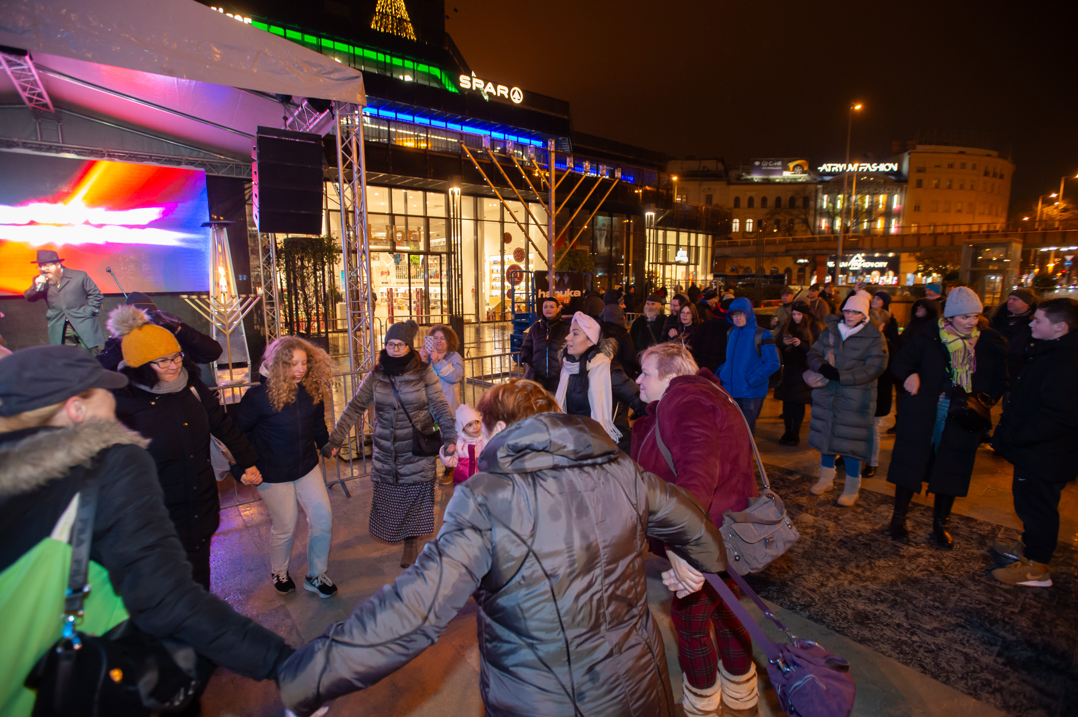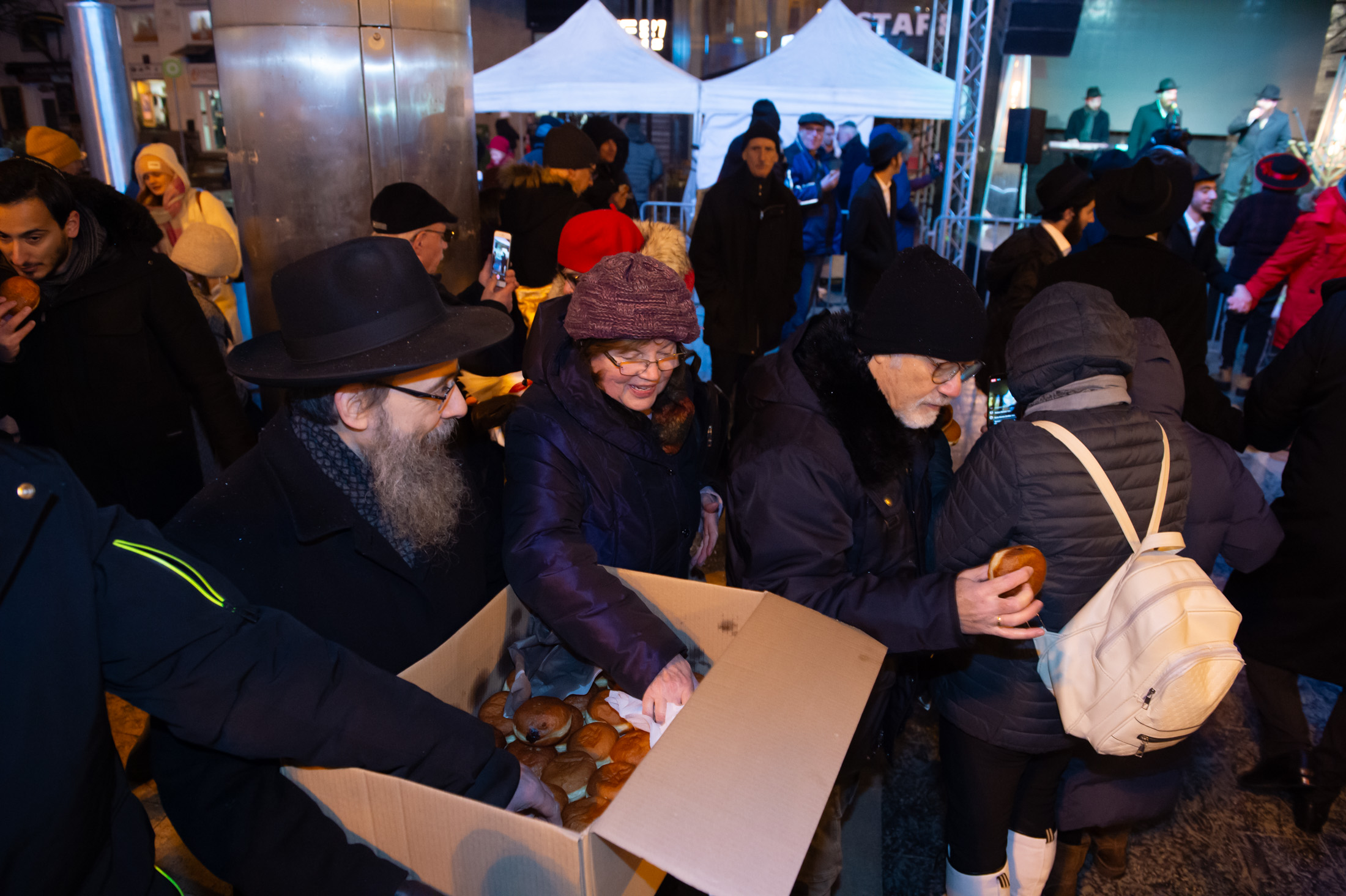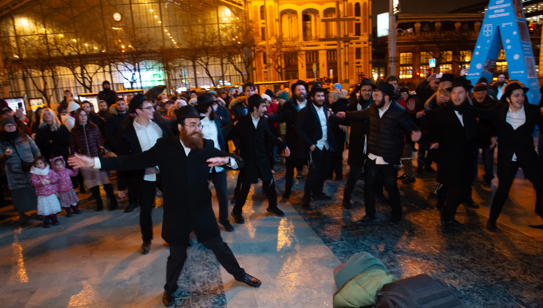 Immár 25 éve kerül sor a nyilvános hanukai gyertyagyújtásra a Nyugati téren. Idén az ünnepnek különös jelentősége van az Izraelt ért terrortámadás és az annak nyomán kialakult háború miatt” – fogalmazott beszédében Köves Slomó, az EMIH vezető rabbija.