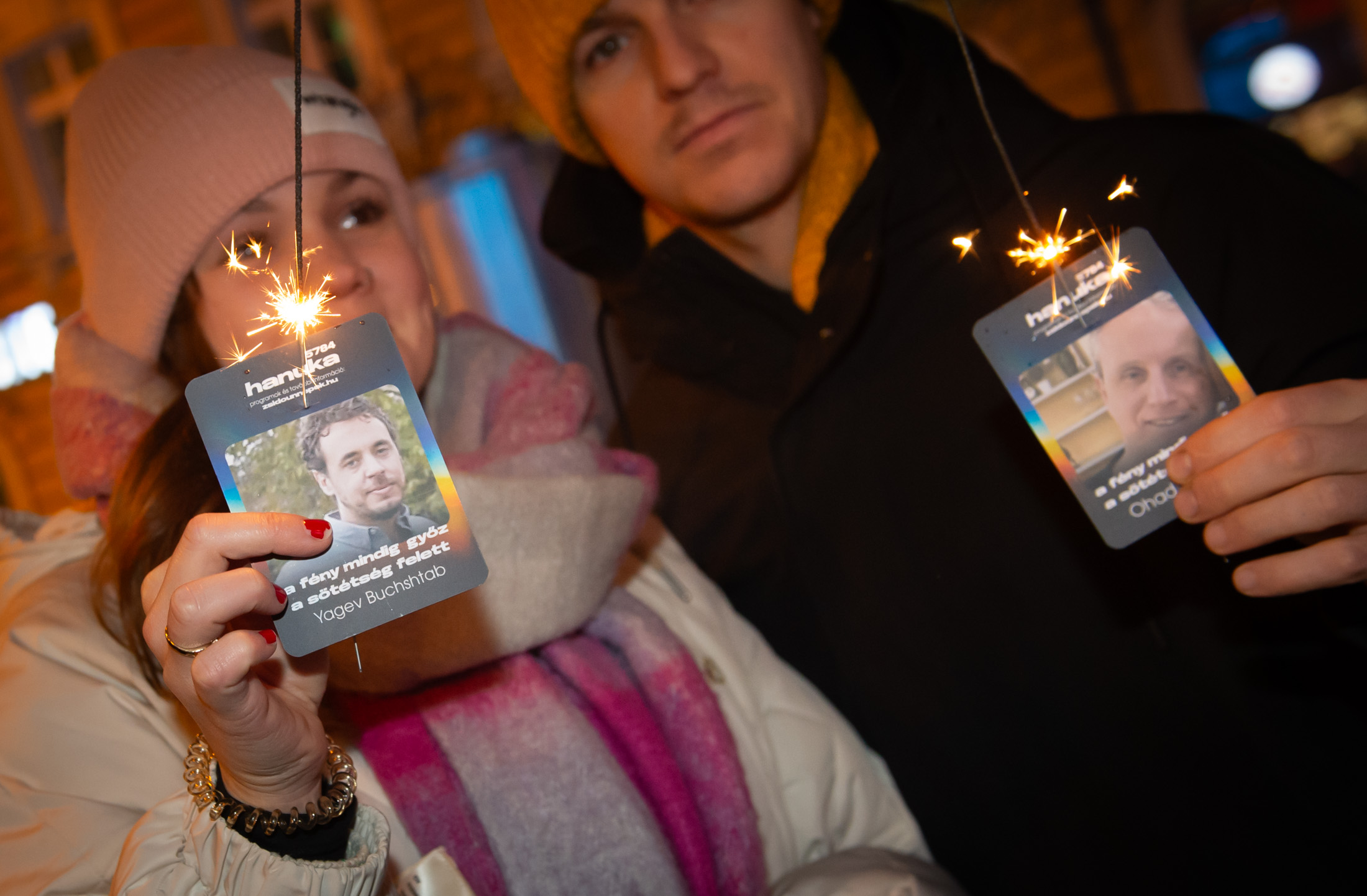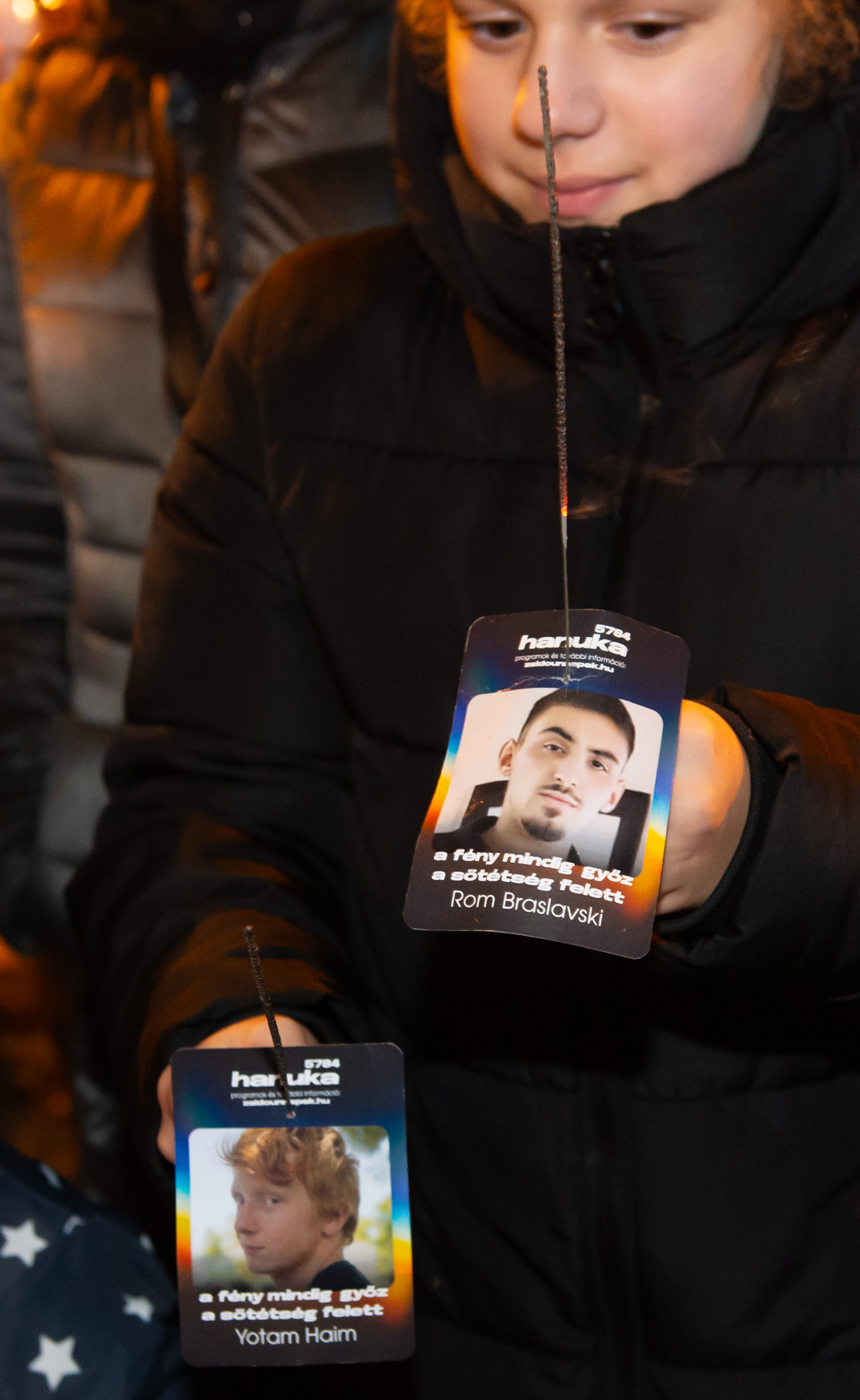 „Égejenek a hanuka gyertyák idén az Izrael ellen elkövetett brutális terrortámadás áldozataiért, a zsidó államért harcoló katonákért, és azért a 138 ártatlan túszért, akik még mindig ennek a Hamász bestiális terrorszervezetnek fogságában vannak. Imádkozunk értük, imádkozunk Izrael békéjéért, imádkozunk Ukrajna és a világ békéért”