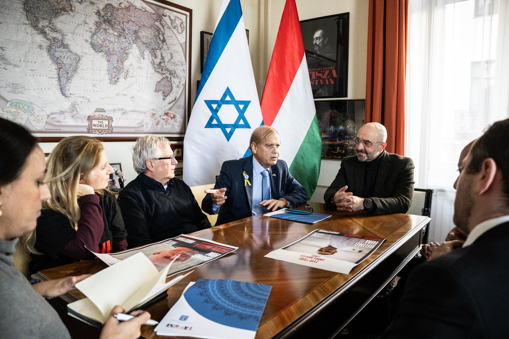 Kovács Zoltán, a Magyar Kormány nemzetközi kommunikációért és kapcsolatokért felelős államtitkára, kormánybiztos, nemzetközi szóvivő fogadta azon, a Hamász palesztin terrorszervezet által október 7-én túszul ejtett izraeli-magyar kettősállampolgárok családjait, akik Magyarországra érkeztek, hogy arra kérjék a kormányt, helyezzen további nyomást a Hamászra, hogy szeretteiket hazaengedjék.
