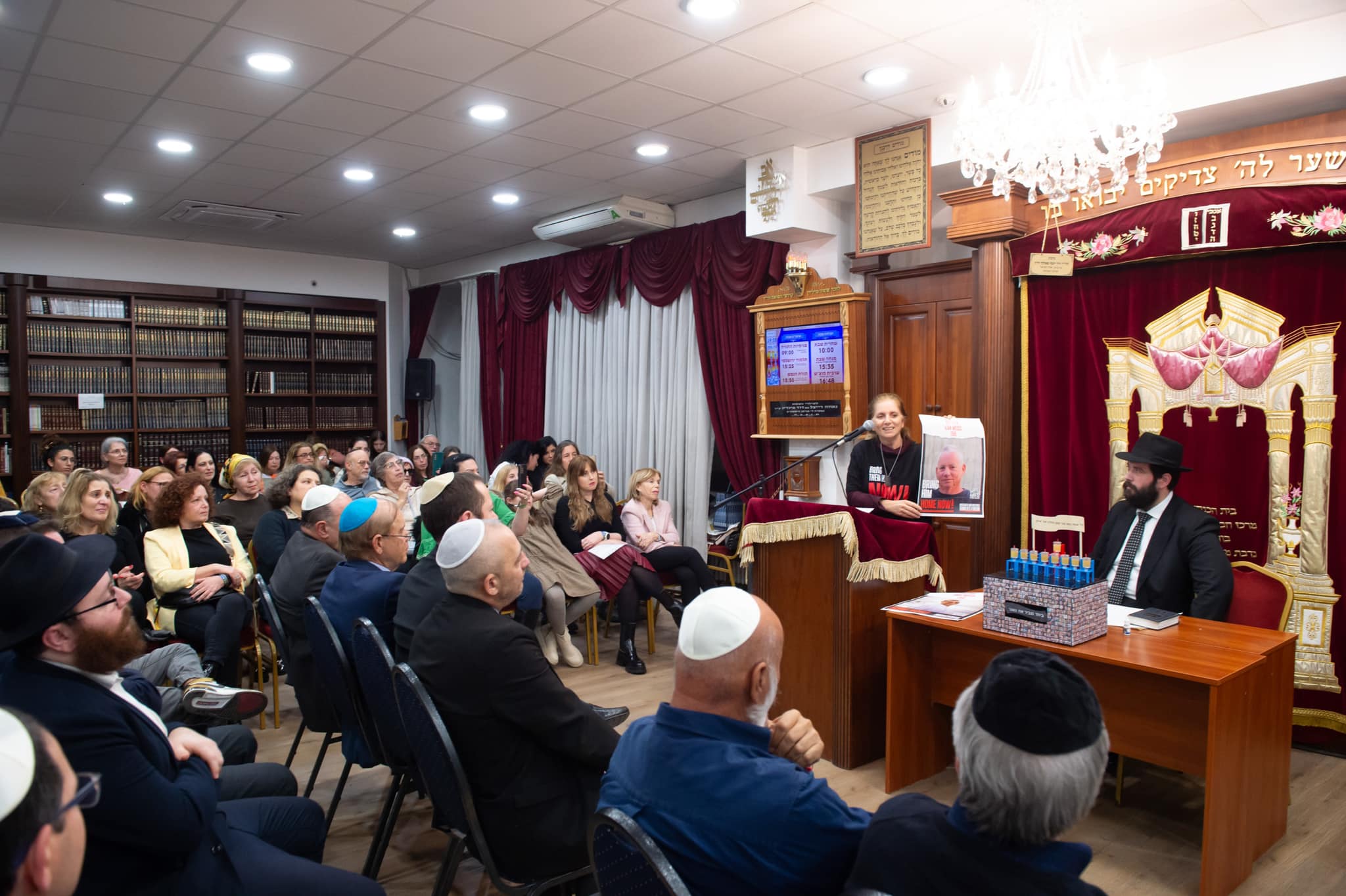 A családok a találkozó után magyarországi Chábád-Lubavicsi mozgalom izraeli közösségének Keren Or központjában gyújtotta meg a hanuka gyertyákat és tartott beszélgetést teltház előtt.
