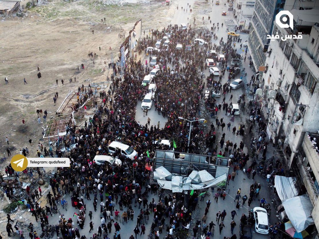 A tűzszüneti megállapodást saját győzelmeként beállító Hamász ugyan látszólag nagy tömeget gyűjtött össze a túszátadáshoz, légifelvételeken azonban látszik, hogy a tömeg néhány száz emberből állt mindösszesen, azaz