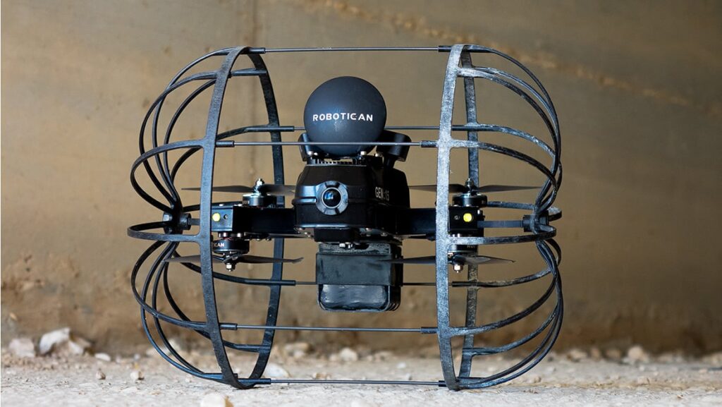 A Robotican állítása szerint a forradalmi Rooster hibrid drón újrafogalmazza a beltéri és földalatti infrastruktúra felderítését azáltal, hogy ügyesen ötvözi a repülő drónok képességeit a földi robotokéval [magyarán tud repülni és a szárazföldön is közlekedni – a szerk.].