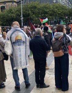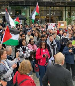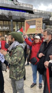 Izraelt gyalázva tartottak palesztinpárti tüntetést a Nyugati téren. Helyszíni riport.