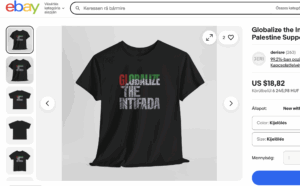 Miközben a nagy online piacterek a biztonságos és erőszakmentes környezet fenntartásáról beszélnek, a „Halál az IDF-re” feliratú pólók és az intifáda dicsőítésére szolgáló árucikkek továbbra is akadálytalanul elérhetők az Etsy és az eBay oldalain.