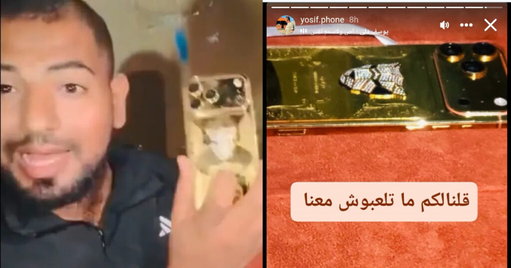 Imshin on X (formerly Twitter): „Available in the Gaza Strip today 25 Nov 2025 – gold plated iPhone 17 Pro Max, with diamond beads. Comes with a gold smart watch! Sold by Yosif Phone, Khan Younes Mawasi, South Gaza Strip.Timestamp: 9 hours ago#TheGazaYouDontSee Link to Instagram links in 1st comment pic.twitter.com/nNGKMy4UBs / X”