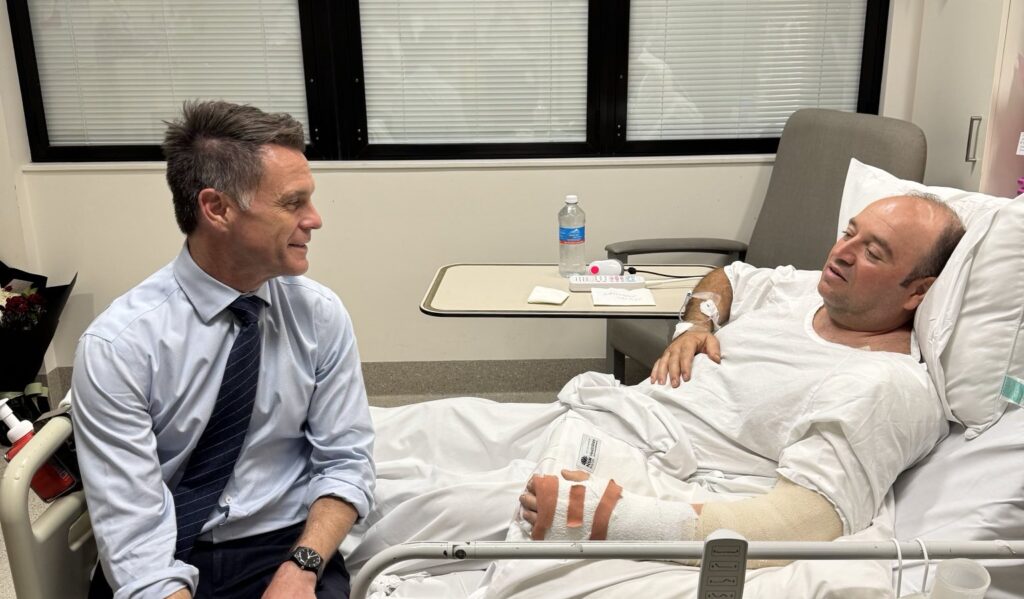 Chris Minns on X (formerly Twitter): „Ahmed is a real-life hero. Last night, his incredible bravery no doubt saved countless lives when he disarmed a terrorist at enormous personal risk.It was an honour to spend time with him just now and to pass on the thanks of people across NSW. pic.twitter.com/3xNBW8vxvZ / X”