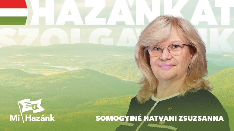 A párt honlapján elérhető információk szerint Somogyiné Hatvani Zsuzsanna a Mi Hazánk Mozgalom jelöltje több mint öt évtizede él Rákosmentén, helyi vállalkozóként és ingatlanforgalmi szakértőként dolgozik, családanya és református hátterű lokálpatrióta. A párt munkájában 2022 óta vesz részt aktívan, értékrendjében központi szerepet kap a család, a nemzeti elkötelezettség és a „globalista szervezetekkel szembeni fellépés”. Programjában papíron a helyi közlekedési gondok kezelése, a gyalogos infrastruktúra fejlesztése, a zöldterületek megóvása és az elhanyagolt közterületek rendszeres karbantartása szerepel,