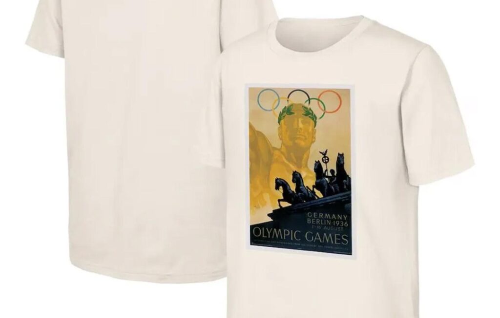 A póló, amelyet 42 dollárért kínáltak az hivatalos online áruházban, már elfogyott. A designon az olimpiai logó látható, alatta egy izmos, győztes sportoló sziluettjével és Berlin híres brandenburgi kapujával. A kép egy Franz Würbeld által tervezett poszteren alapul, amelyet akkoriban a náci propagandaminisztérium az úgynevezett árja felsőbbrendűség bemutatására használt.
