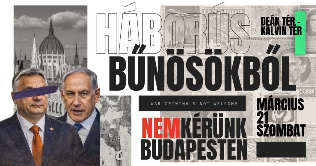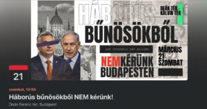Az igazság és a nemzetközi jog védelmében összegyűlünk, hogy együtt tiltakozzunk a háborús bűnös, Benjamin Netanjahu izraeli miniszterelnök budapesti látogatása ellen március 21-én – hirdeti a Gondoskodó Forradalom és Stop amerikai agresszió nevű szélsőbalos Facebook-oldalak szombatra meghirdetett eseménye.