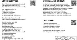 A szervező által mellékelt dokumentum szerint az Internacionálé és a Bella Ciao mellett eléneklik majd a Leve Palestina című, nyíltan a palesztin terrort dicsőítő dalt is.